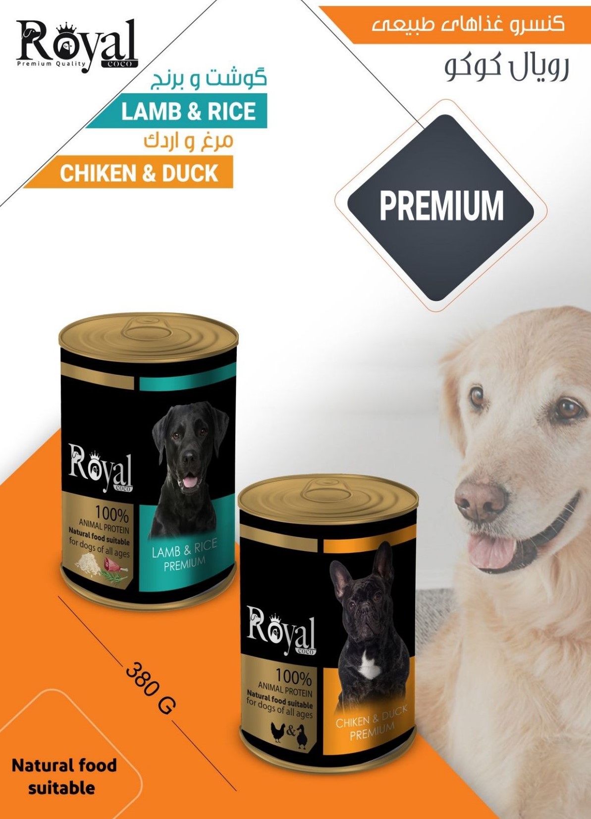 رويال کنسرو سگ طعم بره و برنج-380 گرم