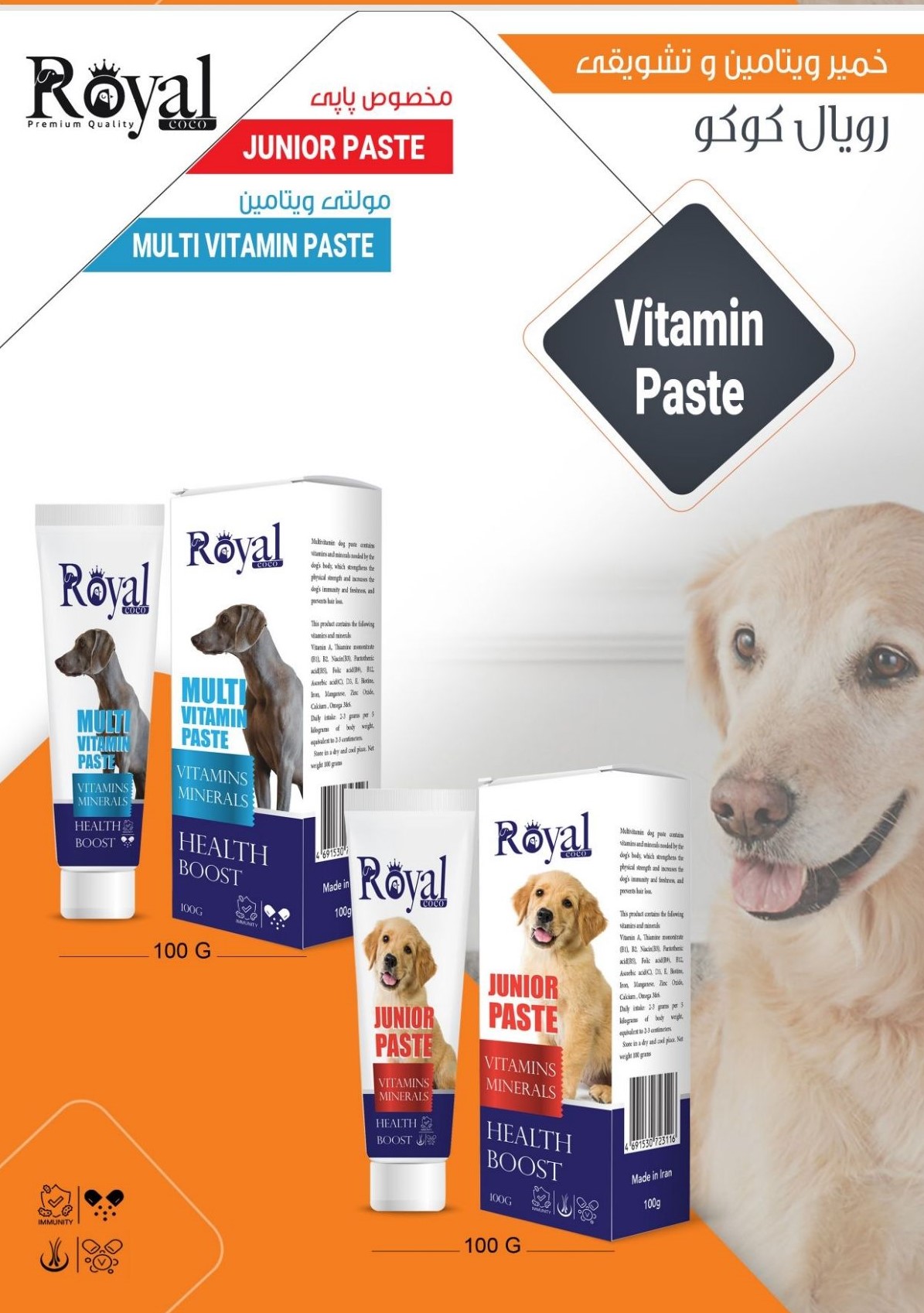 رويال کوکو خميرمولتي ويتامين پاپي 100 گرم