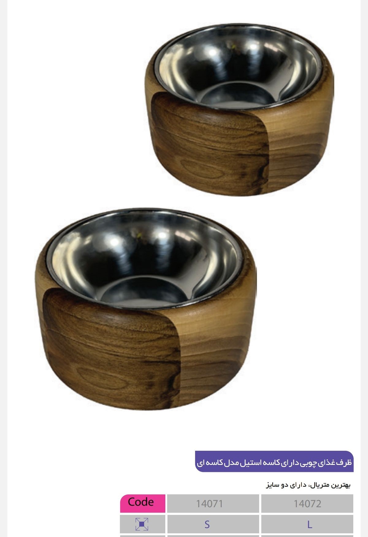 ظرف غذاي چوبي با کاسه استيل سايزL عدد