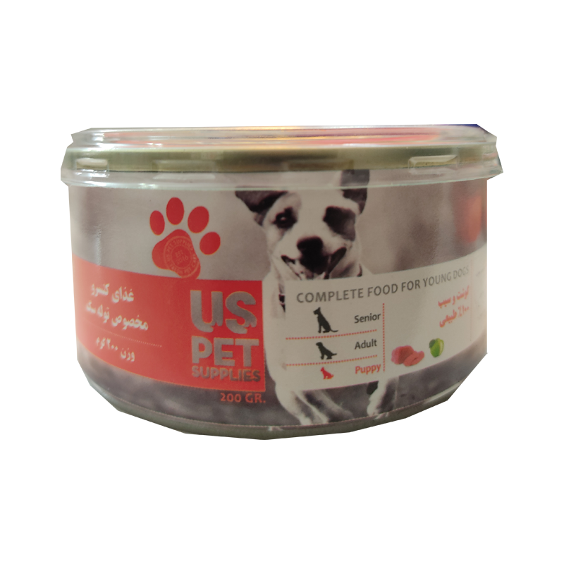 کنسرو 200 گرمی خوراک ترکیبی توله سگ گوشت و سیب(پک 12 عددی)